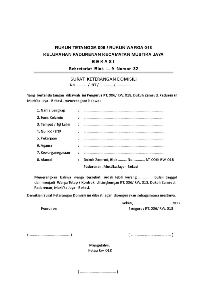 Cek syarat, cara membuat, dan contoh surat keterangan domisili berikut! 5 contoh surat keterangan domisili. Dengan ini menyatakan jika sdr/i dengan nama tersebut diatas memang benar merupakan penduduk dari rt 01/ rw 02 kelurahan tegal alur, kecamatan kalideres, kota . Atau kantor kelurahan," skd bersifat wajib bagi warga pendatang. Kartu tanda penduduk (ktp) dan kartu keluarga (kk) asli dan .